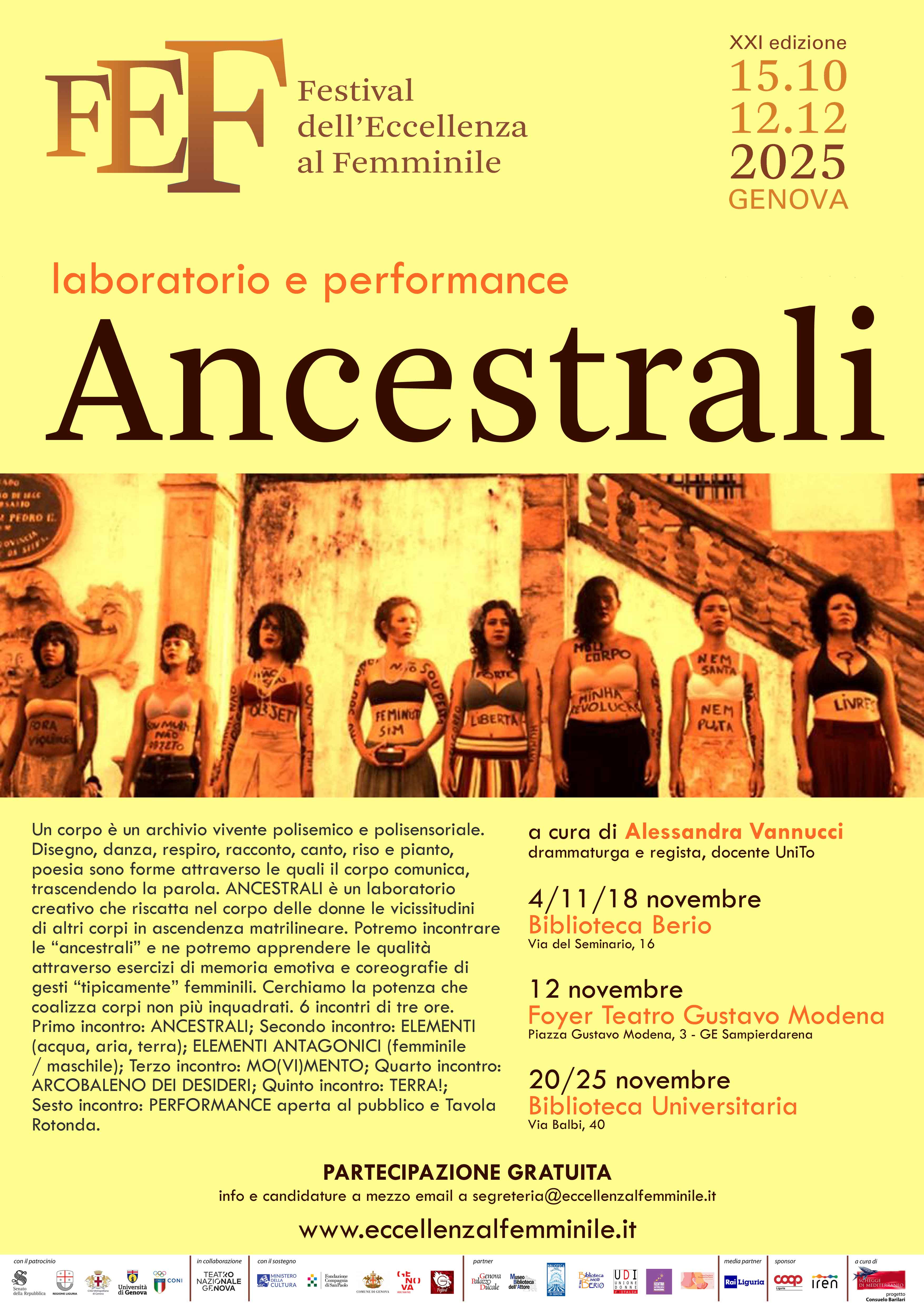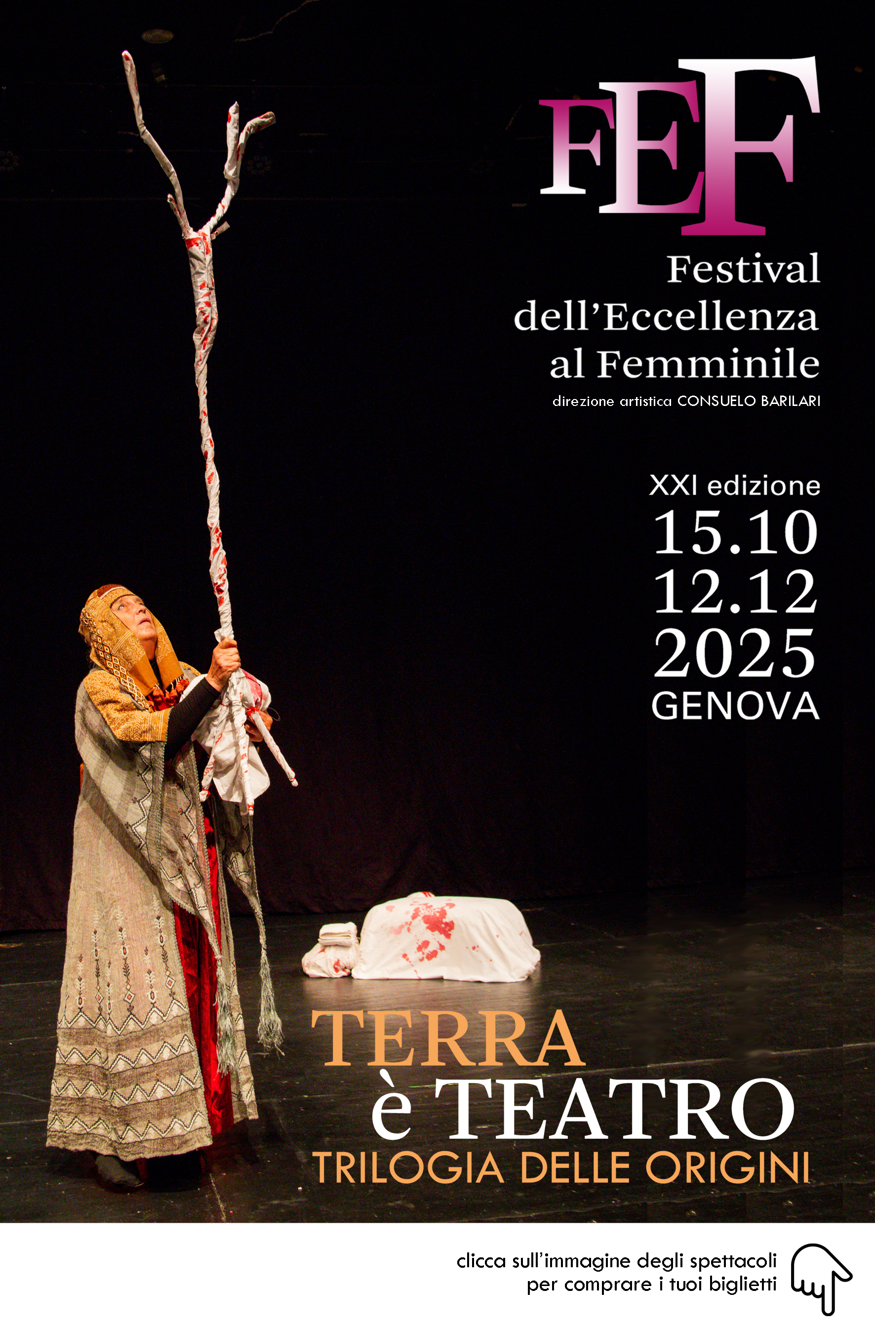 Gli spettacoli della rassegna teatrale del Festival dell’Eccellenza al Femminile, ad eccezione di Nonostante voi (23 novembre Teatro dell’Arca), sono all’interno della stagione del Teatro Nazionale di Genova.